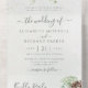 Hermosas invitaciones nupciales todo en uno con ilustraciones de acuarela botánica pintados a mano de vegetación invernal, ramas de pino y abeto, conos y bayas huecas. La elección perfecta para el invierno o para los Navidades bodas temáticos.