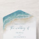 This elegant all in one coastal wedding invitation includes the tearaway RSVP on the bottom for convenience and cost-savings without sacrificing quality. Perfect for destination weddings and any summer beach themed wedding, the design features a hand painted watercolor shoreline in the corner with ocean waves lapping on the beach sand.
