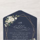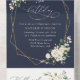 Invite friends and family in style and set the tone for your special day with this charming birthday invitation. Design features white watercolor flowers, greenery and gold frame on navy blue background.