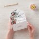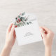 Que nuestras invitaciones a acuarela sean el primer vistazo a tu mágica boda de invierno. Crea una primera impresión inolvidable con un diseño que habla de la elegancia y el romanticismo de la temporada. Las invitaciones de boda todo en uno son hermosas y prácticas al combinar la invitación de boda con una postal RSVP fácil de quitar perforada. También son rápidos y fáciles de preparar para el correo. Simplemente dirija la invitación, doble el pliegue trasero y selle con los pegatinas claros incluidos. Una vez que sus invitados reciben la invitación previa, simplemente rompen la tarjeta RSVP perforada y la tiran por correo.
