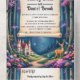 Encanta a tus huéspedes con esta invitación de bodas de cuento de hadas en los bosques, que incluye un maravilloso castillo, animales del bosque y vibrantes flores. Con una encantadora pancarta de "Once Upon a Time" (Una vez por vez) y detalles mágicos, es perfecto para una romántica celebración de un libro de cuentos.