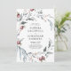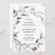 Todo en un código QR Invitación a la boda de Wreath de invierno Berries Greenery. Nuestras bayas de invierno "frontales y bajas" y la invitación a la boda de la flor de flores de invierno con una delicada cortina de agua artística de color gris plateado, salpicada de Navidades y bayas rojas de temporada enmarcando su texto de invitación personalizado. La parte posterior de la invitación contiene todos los detalles que normalmente se verían en tarjetas separadas dentro del paquete de bodas, incluido el código QR para el sitio web de su boda, que se puede crear directamente en la plantilla Personalización de Zazzle. Este estilo moderno, todo en una sola invitación a la boda, fue diseñado para ser elegante y consciente del presupuesto... así como para ahorrar tiempo. Todos los ejemplos de texto en ambos lados se pueden revisar fácilmente con su propia información sobre la plantilla de personalización.