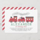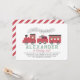 Esta tierna invitación a los Navidades "todos a bordo" para vacaciones de 1er/primer cumpleaños tiene un fondo blanco con tren de vapor en rojo. El lado inverso presenta un fondo blanco con rayas diagonales rojas. Personalízalo para tus necesidades. Puedes encontrar productos coincidentes en mi tienda.