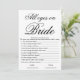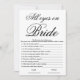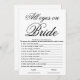 Haga que su ducha de novia sea divertida y memorable con el juego de ducha simple de novia All Eyes on Bride. Este entretenido juego interactivo está diseñado para traer risas, alegría y un poco de competencia amistosa a su celebración. El juego "All Eyes on Bride" (Todos los ojos en la novia) anima a los invitados a centrarse en la novia, contestar preguntas o realizar tareas que giran en torno a ella. Es un perfecto rompehielos que une a todos. Las instrucciones fáciles de seguir hacen que este juego sea adecuado para todas las edades. No hay reglas complicadas, sólo diversión directa que todos puedan disfrutar. Las tarjetas de juego tienen un diseño limpio y elegante que complementa cualquier tema de la ducha de novia. Los colores suaves y femeninos y la tipografía de buen gusto le dan un toque de sofisticación a su evento.
