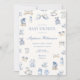 Celebrate the arrival of your little one in timeless style with this dusty blue Toile de Jouy baby shower invitation. Inspired by classic French countryside prints, this elegant design features hand-drawn illustrations of vintage baby essentials — a rocking horse, stroller, baby bottle, wash basin, socks, bow, and delicate florals — all arranged in a soft and charming pattern.