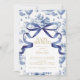Invitación Toile De Jouy Dusty Blue Bow Baby Shower