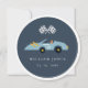 Una Colección de Cumpleaños con Tema de Coche de Carreras para Niños Lindos.- Es una Ilustración simple minimalista y elegante de coche de carreras con bandera de cuadros, perfecta para la fiesta de cumpleaños de tu pequeño. Es muy fácil de personalizar con tus datos personales.