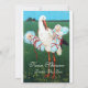 Elegante, divertido, vibrante diseño en verde azulados colores azules para mellizos: niños con una lujosa cigüeña en el campo verde, naturaleza bajo el cielo azul, re-elaborada de vintage.