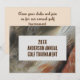Esta invitación al torneo de golf familiar anual neutra en cuanto al género es una forma única de personalizar su juego de golf familiar. Una foto de pluma gris y marrón se presenta en este anuncio junto con todos los detalles del evento. Todo el texto se puede personalizar fácilmente.