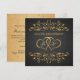 Invitación al 50º Aniversario de Boda con tornillos dorados frondosos y corazones unidos en un fondo negro. En el reverso - efecto dorado de lunares, (puede ser eliminado). Puede ajustar el texto según sus necesidades.