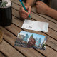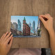 Esta postal presenta un retrato acuático del edificio Gooderham en Toronto, Canadá.