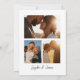 Celebra tu historia de amor con esta elegante y minimalista invitación de compromiso de torre de champán. La parte delantera presenta una pila dibujada a mano de copas coupe burbujeantes en líneas negras, combinada con caligrafía elegante y fuentes serif. La parte trasera muestra tres espacios para fotos para agregar tus recuerdos de compromiso favoritos, creando un toque personal y elegante. Ideal para parejas modernas que planean una soirée de cócteles, una celebración en una azotea o una fiesta de cena elegante.