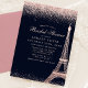 Invitación Torre Eiffel de París Rosa Dorado Brillo Despedida