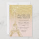 Invitación Torre Eiffel moda oro purpurina rosa Dulce 16