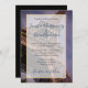 Invitación a una boda con una fotografía de la Torre Eiffel tomada en ángulo, dándole una perspectiva interesante. Acentuando el metalizado trabajo de entramado. Marco semitransparente con un borde de color dorado sobre la parte superior.