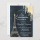 Invitación Torre Eiffel, Tiara, Dris Quinceañera azul oscuro