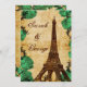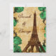 Shabby Chic , rústica vintage , Romántica torre Eiffel con rosas verdes esmeraldas, invitaciones nupciales francesas. También hay productos de coincidencia disponibles.