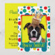 Invite a sus huéspedes con esta fantástica tarjeta de felicitación de Boxer Dog. Con un bizcocho balanceado en la cabeza, este diseño hará sonreír y reír. BTW, Este diseño tiene varias versiones, con diferentes colores de fondo. También hay una versión Feliz Cumpleaños.