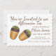 La invitación presenta una ilustración original de un par de madeleines bañadas en chocolate, con texto marrón y acentos. Simplemente personalice con su información para una invitación de boda, fiesta de cumpleaños, social de pastel, venta de pasteles o té de la tarde única.