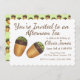 La invitación presenta una ilustración original de un par de madeleines bañadas en chocolate, con texto marrón y acentos. Simplemente personalice con su información para una invitación única para una fiesta de despedida de soltera, fiesta de cumpleaños, reunión social de pasteles, venta de pasteles o té de la tarde.
