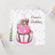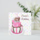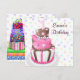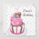 Hermosas invitaciones de cumpleaños para la primera fiesta de cumpleaños de niñas con pastel de cumpleaños rosa y marrón.
