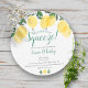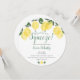 Con limones y follaje, esta elegante y divertida invitación circular de despedida de soltera se puede personalizar con la información de su evento especial y sus iniciales de monograma en el reverso. Diseñado por Thisisnotme©