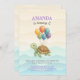 Tortuga acuarela bajo los globos marinos Invitación de cumpleaños