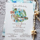 Hermosa flor tropical azul y verde y tortuga marina es la manera perfecta de anunciar el boda de la isla. El arte costero acuarela es versátil para colores polvorientos azules, elegantes azul claro y boda acuático. El colorido diseño azul océano y turquesa es perfecto para invitaciones de bodas en la playa de verano. Transfiera fácilmente el diseño de las tortugas acuáticas a un surtido de tarjetas y signos.