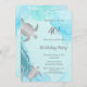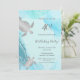Esta invitación para ella tiene fondo de color azul turquesa plateado de tinta azul color agua. Elegante diseño náutico femenino para un cumpleaños en la playa.