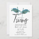 Invitación Tortugas Marinas Azul Teal Baño para Bebé Gemelos
