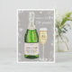 Las invitaciones únicas para la fiesta de aniversario de boda presentan una botella de champán ilustrada y una copa de flauta con los detalles de la celebración de su aniversario en la etiqueta de la botella y la copa de champán. Personalice para cualquier aniversario; el ejemplo se muestra para un aniversario número 50 con "brindis por 50 años".