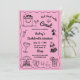 Agrega un toque soñador y juguetón a tu celebración con esta Invitación de Despedida de Soltera "Último Brindis en la Costa" de estilo caprichoso y dibujado a mano en rosa. Adornada con encantadoras ilustraciones y detalles costeros aireados, captura perfectamente el espíritu despreocupado de una despedida junto al mar. Ideal para retiros en la playa, desayunos o almuerzos en la costa, o un fin de semana de escape al atardecer con la tribu de la novia, esta invitación establece el tono para una reunión divertida e inolvidable junto a la orilla.