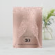 Invitación de cumpleaños número 50 para fiesta con brillo rosa y dorado metalizado... Sobre un fondo de papel de aluminio dorado rosa con un borde de brillo rosa suave, copas de vino con diamantes que brillan para brindar por el cumpleaños número 50 de un amigo o familiar con las palabras "Aquí celebramos 50 años en el planeta Tierra". La parte trasera de la invitación -- también con rosa dorado femenino y brillo -- muestra todos los detalles de la fiesta: nombre del homenajeado, fecha, hora y lugar de la fiesta, además de la información de RSVP. Un comienzo glamuroso para un cumpleaños número 50. Todo el texto en la parte frontal y trasera de la invitación se puede revisar fácilmente en la plantilla de personalización.