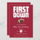 Score a touchdown with this "First Down" football-themed first birthday invitation! Perfect for your little MVP's big day, this design features a classic football graphic on a bold, rich background. Celebrate your baby's first year with a sporty flair that guests will love. This invitation is sure to be a slam dunk for any football-loving family, setting the perfect tone for a memorable birthday party.