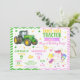 Invitación Tractor Verde y Cumpleaños Compartido de Unicornio