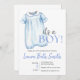 Comienza tu fiesta con la invitación perfecta. Este clásico traje de burbuja que anuncia un niño es una forma encantadora de celebrar a la futura mamá.
