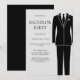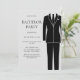 Invitación a la fiesta de soltero para hombre con traje negro y corbata Ver colección coincidente en la tienda Niche and Nest Muchas gracias