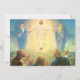 Ilustración vintage de diseño religioso que presenta a Jesucristo y tres de sus apóstoles, Pedro, Santiago, Juan, van a una montaña (el Monte de la Transfiguración) a orar. En la montaña, Jesús comienza a brillar con brillantes rayos de luz. Luego, los profetas Moisés y Elías aparecen junto a él y él habla con ellos. Jesús es llamado "Hijo" por una voz en el cielo, que se supone es Dios Padre, como en el Bautismo de Jesús.