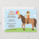 Invite a los amigos de su niño a su fiesta de cumpleaños siguiente con esta invitación adaptable de la fiesta de cumpleaños del jinete de lomo de caballo. Ofrece a un chica rubio que monta un caballo con los globos del fiesta. Personalice con sus detalles del fiesta. ©JDDigiDesign de algunos elementos