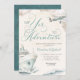 Celebrate the couple's next great adventure with this vintage-inspired travel engagement party invitation. Featuring whimsical details like airplanes, cruise ships, and watercolor clouds, this design captures the excitement of wanderlust and romance. Perfect for travel enthusiasts, it blends soft aqua and gold tones with elegant script for a timeless, adventurous look. The "Say Yes to Adventure" theme makes it ideal for destination celebrations or engagement parties with a global twist. Whether the couple dreams of dinner cruises or honeymoons abroad, this invitation sets the perfect tone for a celebration full of love and exploration. Customize yours today to start their journey in style!