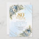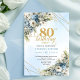Invitación Trendy 80th Birthday Invitation Blue White Florals