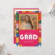 Make a bold statement with this photo graduation invitation featuring a vibrant retro graduation border and bright modern simple minimalist layout. Perfect for any high school college university graduate, it highlights your favorite grad graduate portrait above a clean graduation invitation layout for party details. Ideal for a class of 2026 grad party, this design feels casual trendy unique and full of personality. Personalize the name and event information to create unforgettable graduation party invites. Personalize yours today.