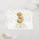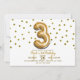 Invitación Tres 3 Globo de Confeti de Oro Cumpleaños 3