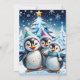 Tres adorables pingüinos están parados en festivos gorras de invierno y coloridas bufandas. Sus grandes ojos redondos brillan de alegría, mientras que sus esponjosas campanas blancas contrastan con el brillante árbol de Navidad azul decorado con luces brillantes. Los pingüinos sonríen alegremente y parecen listos para celebrar la magia de la temporada navideña. A su alrededor, delicados copos de nieve bailan a través del aire, mientras las estrellas brillan en el cielo, creando un ambiente cálido y festivo. Este diseño captura perfectamente el espíritu de los Navidades - lleno de alegría, amistad y maravilla de invierno!