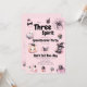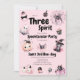 Ella es un Espíritu Tres. Invitación a la fiesta de cumpleaños de Halloween incluye adorables gráficos de calabazas rosas y melocotones, araña de gatos, fantasma lindo.