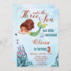 "Under the Sea Extravaganza: Únete a nosotros, nuestra sirena cumple tres años!" Sumérjase en la magia del océano con esta encantadora invitación de cumpleaños con temática de sirena marrón. El diseño animado muestra una sirena adorable explorando un mundo submarino vibrante, invitando a todos a celebrar el tercer cumpleaños de su preciado. La lúgubre frase "Tres en el mar" añade un toque de fantasía, mientras que los detalles del personalizable en la parte delantera le facilitan adaptar la invitación. Voltea la tarjeta para descubrir un delfín alegre y un lugar especial para tu mensaje personal.