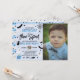 Estas divertidas y elegantes invitaciones son perfectas para cualquiera que celebre su tercer cumpleaños en Halloween. El diseño presenta todo lo espeluznante, desde un gato negro con murciélagos volando hasta una telaraña de araña, fantasmas, una escoba de bruja, calavera y hueso, bola de cristal mágica y una calabaza de jack-o-lantern, todo en negro, blanco y tonos de colores azules. La foto y el texto de la plantilla son fáciles de personalizar y los invitados a tu fiesta se asustarán cuando reciban estas invitaciones por correo.