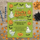 Planificar un cumpleaños de otoño para tu niño de 3 años nunca ha sido más fácil. Nuestra invitación a los Tres Espíritus es adorable, igual que tu pequeño monstruo. El frente está adornado con fantasmas, murciélagos y jack-o-linternas y la parte trasera tiene un patrón divertido y se puede dejar lisa o añadir una imagen. Ideal para cualquier cumpleaños de otoño o Halloween.