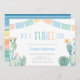 Invite a los huéspedes a celebrar el tercer cumpleaños de su pequeño niño en un fiesta de TRES-esta con estas elegantes invitaciones de cactus en amarillo vibrante, naranja, verde y azul acuático.