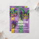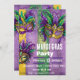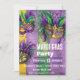 Brillante y hermosa invitación a la celebración de la máscara Mardi Gras con fondo morado, verde y dorado. Personalizar esta invitación al Mardi Gras con todos los detalles de tu fiesta. ¡Que pase el buen rato y que lo pases bien celebrando el Mardi Gras! ¡Disfrútalo!
